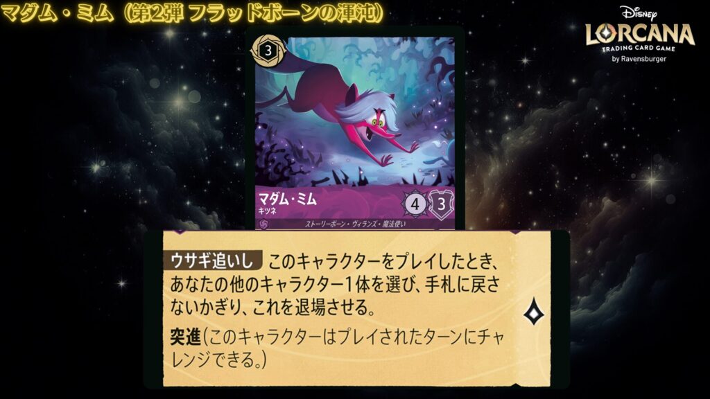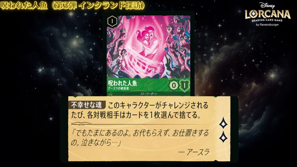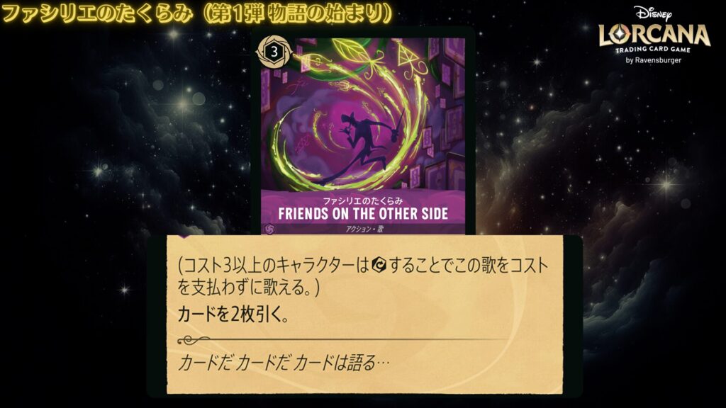「本ブログは、ディズニー・ロルカナ TCG に関連する商標および/または著作権を使用しており、ラベンスバーガーのコミュニティコードポリシー (https://cdn.ravensburger.com/lorcana/community-code-en) のもとで使用が許可されています。 私たちは、このコンテンツの利用やアクセスに対して料金を請求することを明確に禁止されています。本ブログは、ディズニーやラベンスバーガーによって公開、承認、または特別に認可されたものではありません。 ディズニー・ロルカナ TCG の詳細については、https://www.disneylorcana.com/en-US/ をご覧ください。」