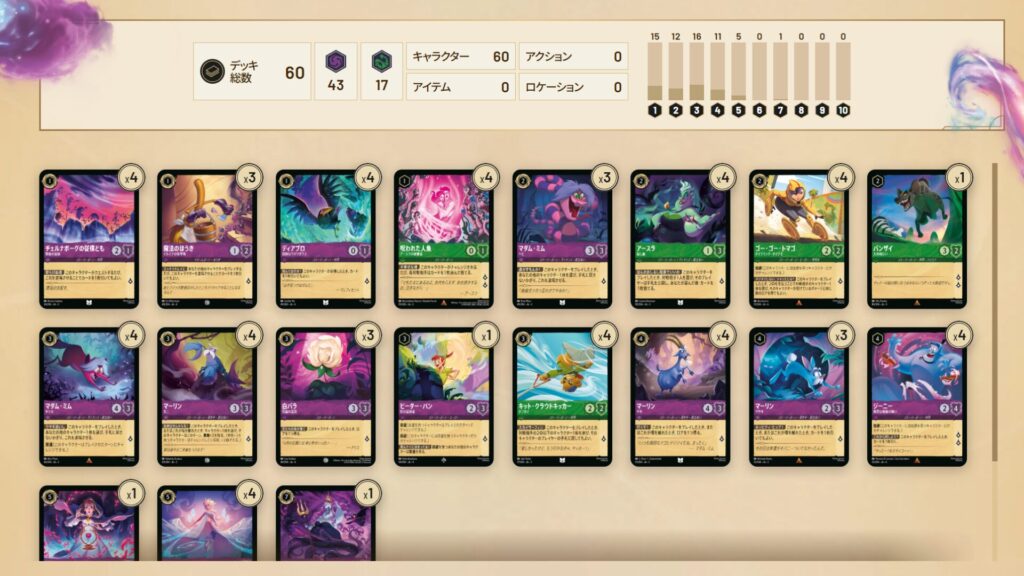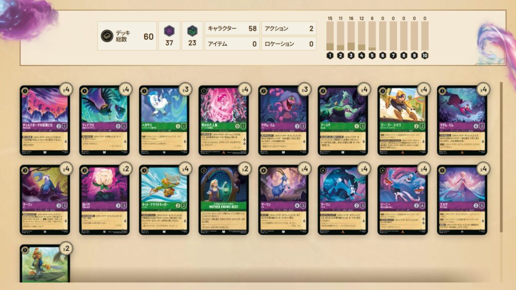通常、TCGのデッキはキャラクター・アクション・ロケーションなどのカードをバランスよく入れます。