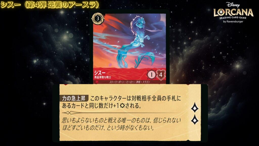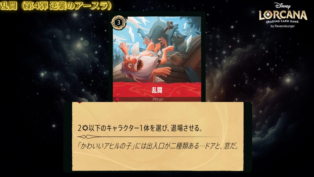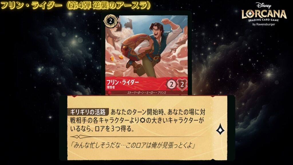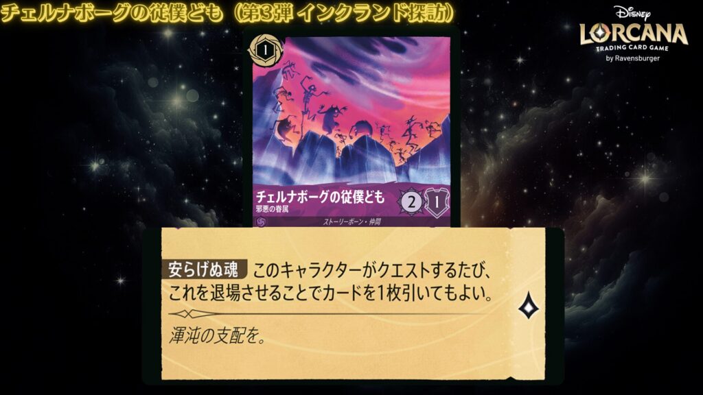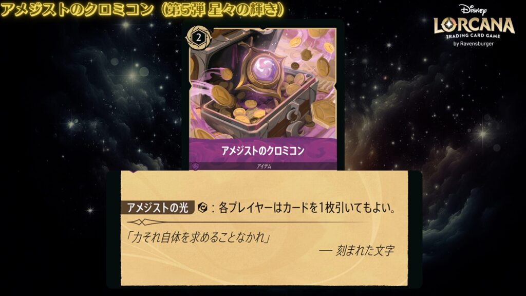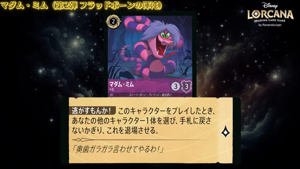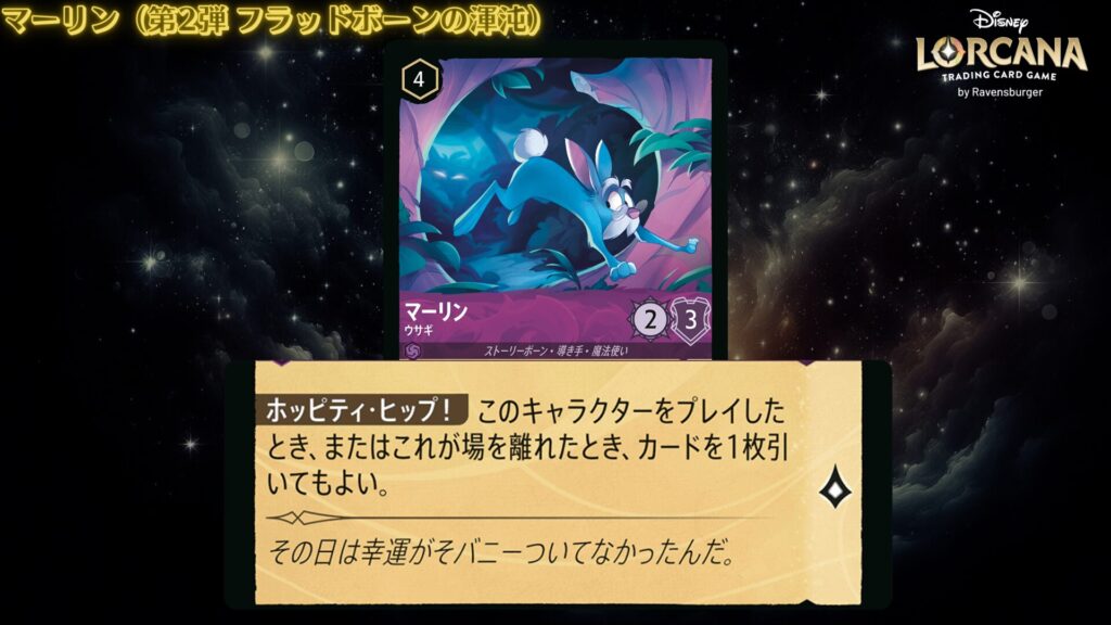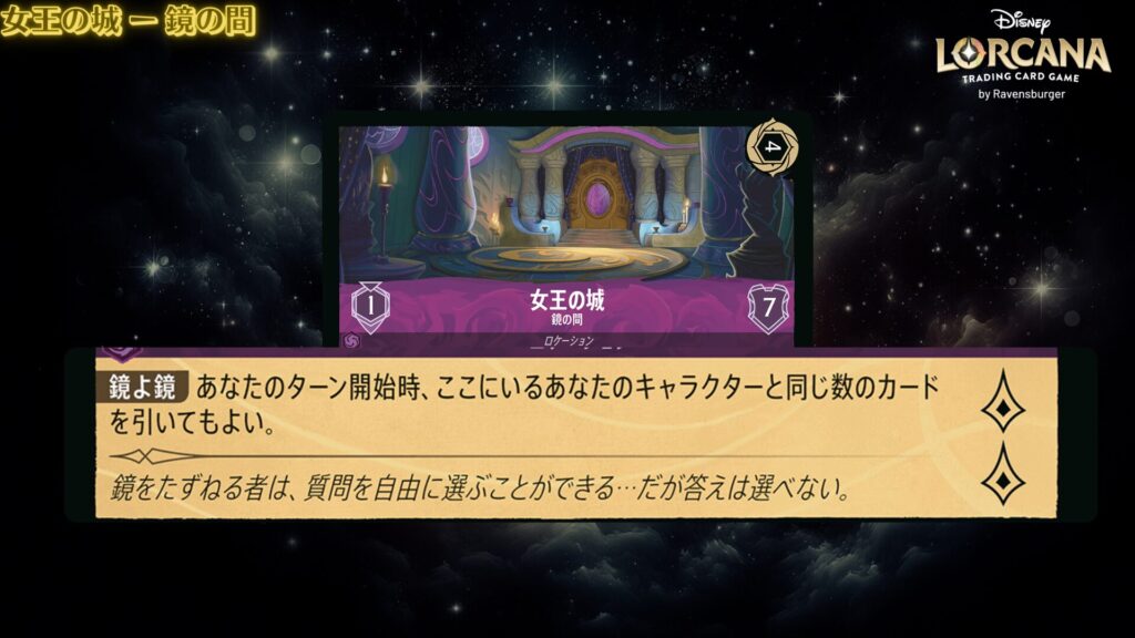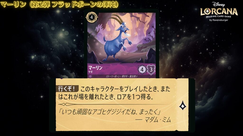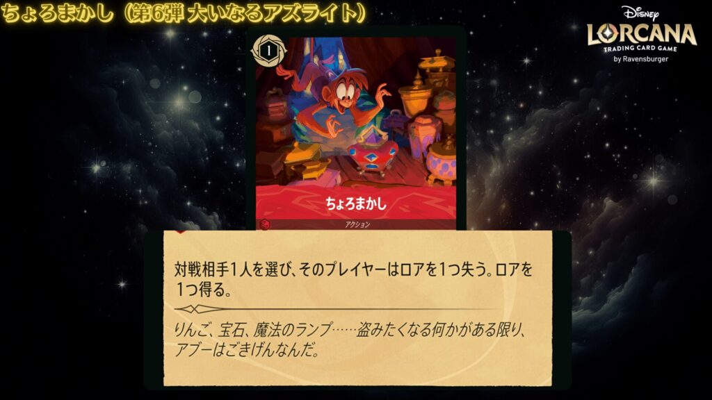 「本ブログは、ディズニー・ロルカナ TCG に関連する商標および/または著作権を使用しており、ラベンスバーガーのコミュニティコードポリシー (https://cdn.ravensburger.com/lorcana/community-code-en) のもとで使用が許可されています。 私たちは、このコンテンツの利用やアクセスに対して料金を請求することを明確に禁止されています。本ブログは、ディズニーやラベンスバーガーによって公開、承認、または特別に認可されたものではありません。 ディズニー・ロルカナ TCG の詳細については、https://www.disneylorcana.com/en-US/ をご覧ください。」
