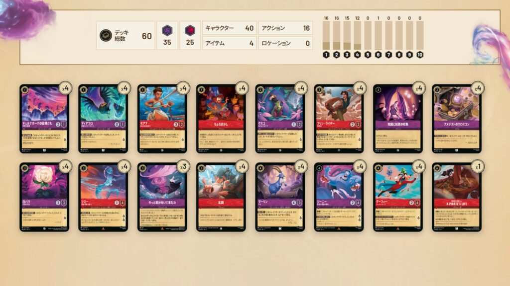 | デッキ | キャラクター比率 | インク可能カード比率 |
