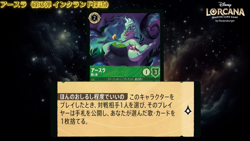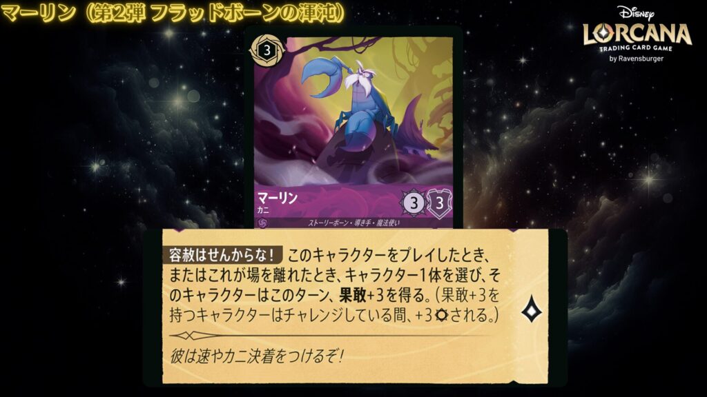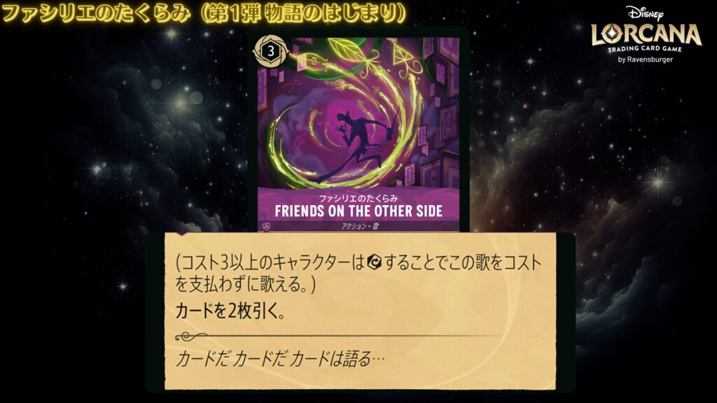 「本ブログは、ディズニー・ロルカナ TCG に関連する商標および/または著作権を使用しており、ラベンスバーガーのコミュニティコードポリシー (https://cdn.ravensburger.com/lorcana/community-code-en) のもとで使用が許可されています。 私たちは、このコンテンツの利用やアクセスに対して料金を請求することを明確に禁止されています。本ブログは、ディズニーやラベンスバーガーによって公開、承認、または特別に認可されたものではありません。 ディズニー・ロルカナ TCG の詳細については、https://www.disneylorcana.com/en-US/ をご覧ください。」