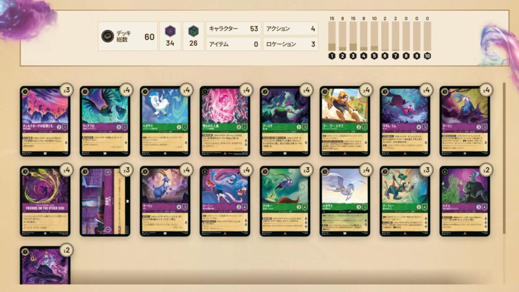 すべてのデッキで、インクコスト3のカードが最も高い割合を占めています。