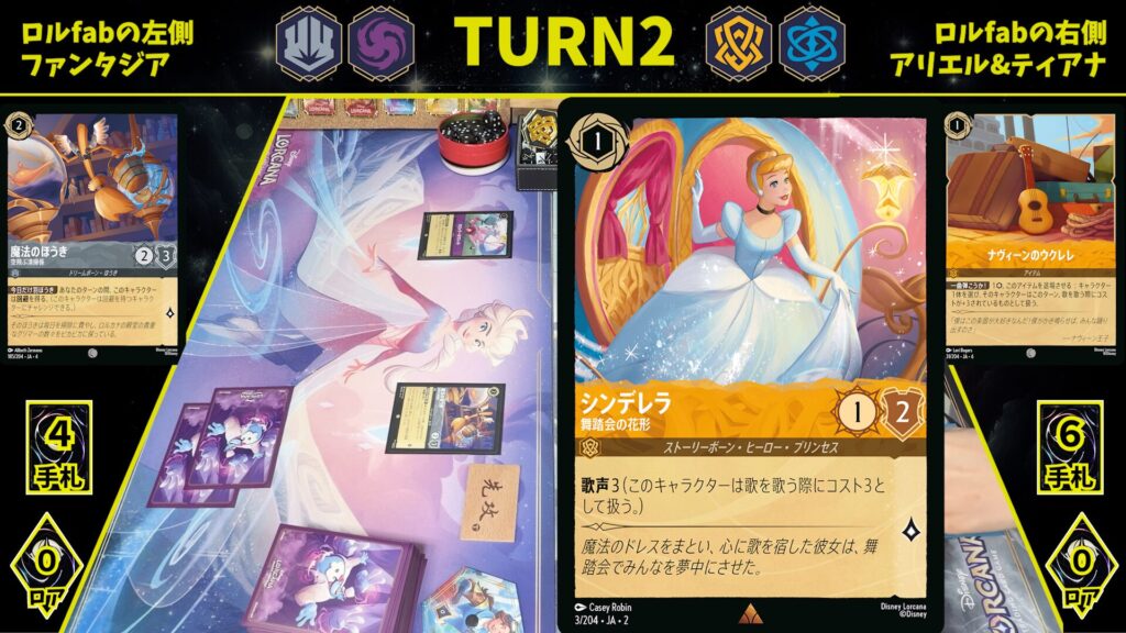 シンデレラや低コストキャラを展開し、歌を使ってテンポを取ります。