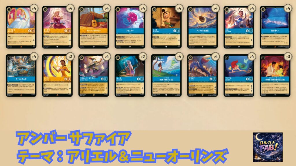 今回紹介するのは、アンバーとサファイアを組み合わせた「アリエル&ニューオーリンズ」デッキです。