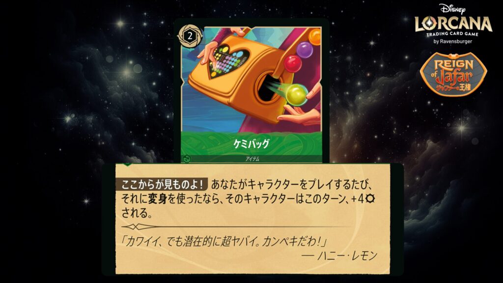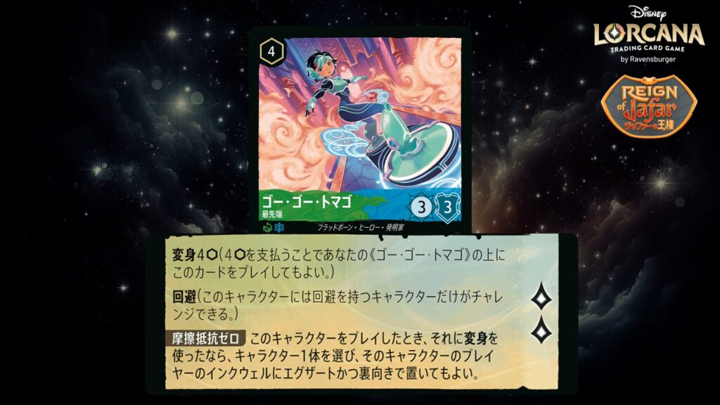 🎯 <だれでも変身>4(4インクを支払うことであなたのキャラクターの上にこのカードをプレイしてもよい。)