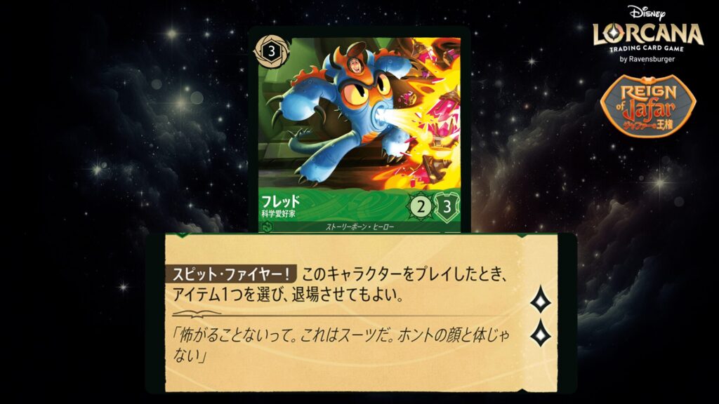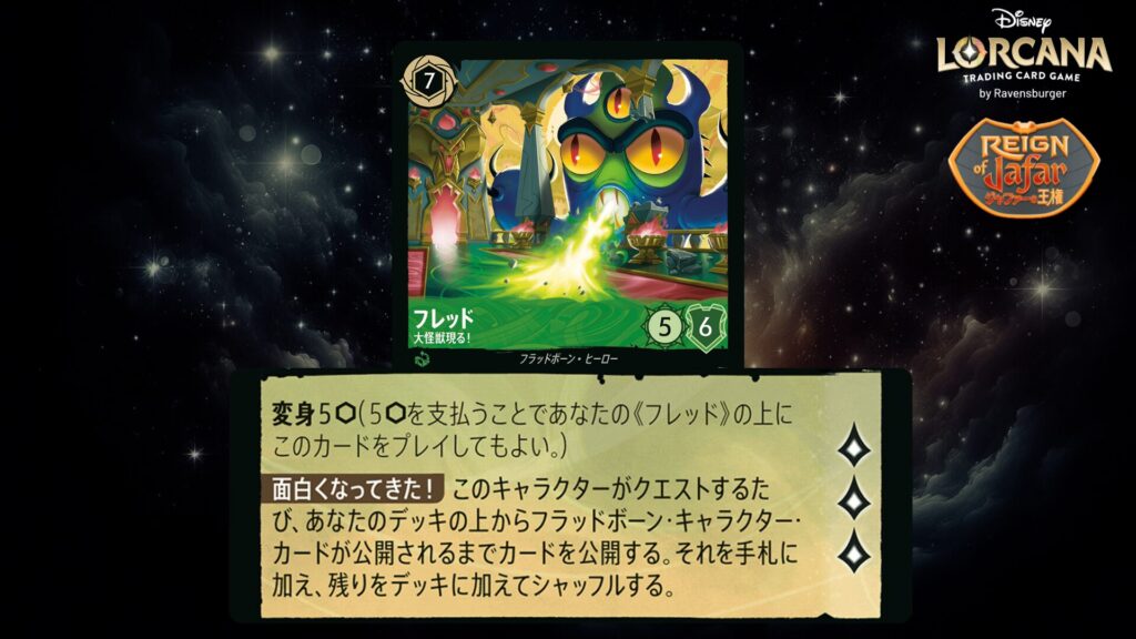 🎯 <変身>5インク(5インクを支払うことであなたの《フレッド》の上にこのカードをプレイしてもよい。)