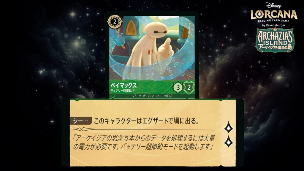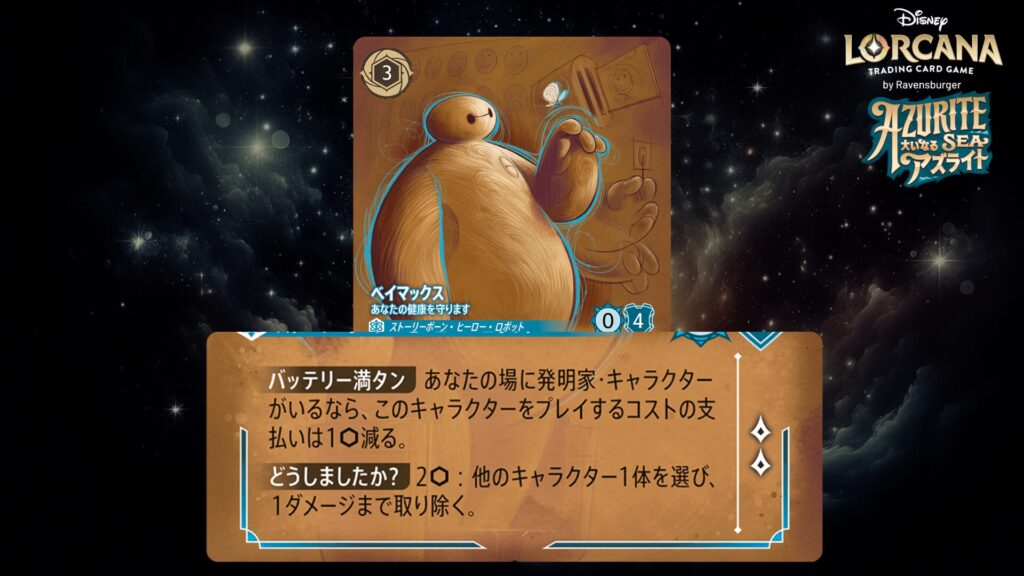 ディズニー・ロルカナに登場する「ベイマックス」のカードを全セット分、1枚ずつ詳しくご紹介します。