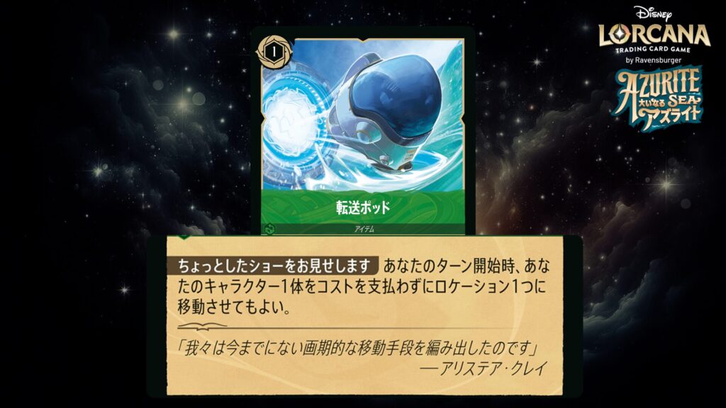 あなたのターン開始時、あなたのキャラクター1体をコストを支払わずにロケーション1つに移動させてもよい。