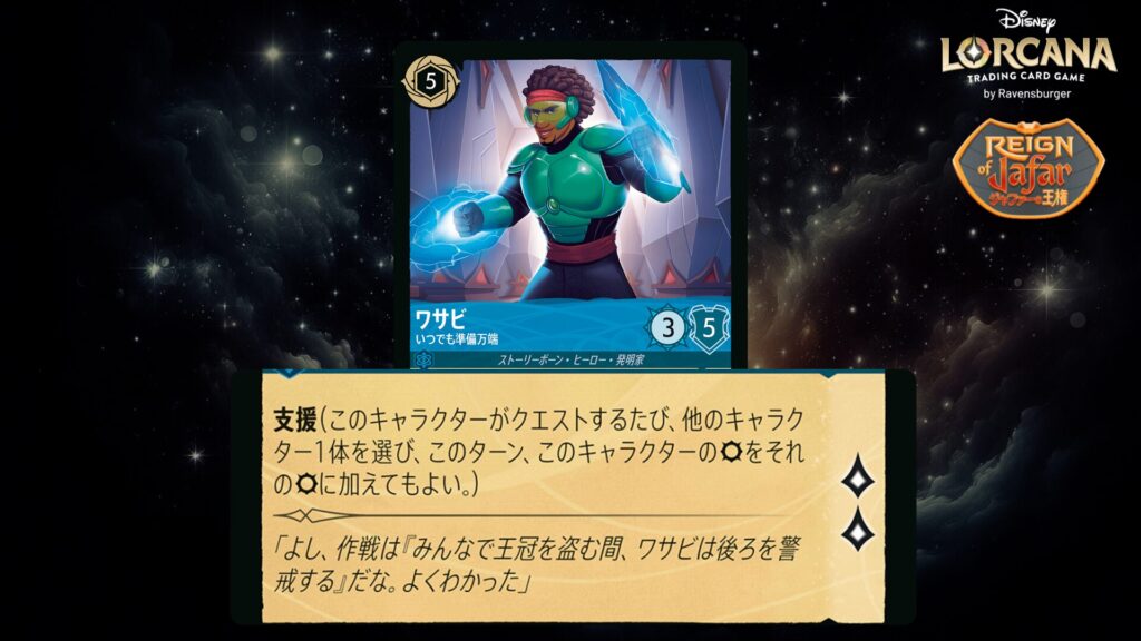🎯 <支援>(このキャラクターがクエストするたび、他のキャラクター1体を選び、このターン、これの攻撃力をそれの攻撃力に加えてもよい。)