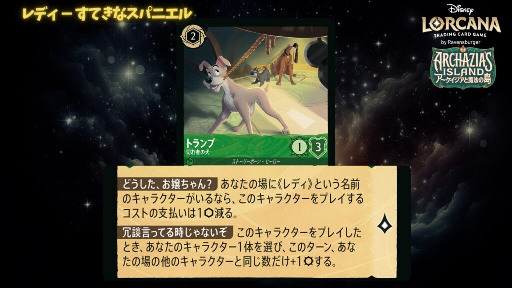 1コストのレディが場にいると、トランプ ー 切れ者の犬を低コストで出せます。