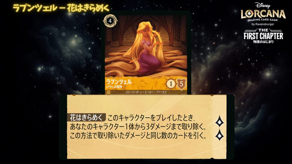 ロルカナは、ディズニーキャラクターたちが魔法のインクによって描かれ、物語を体験しながら遊べるカードゲームです。