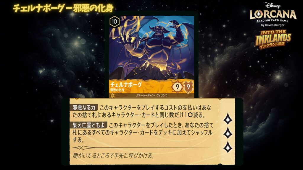 【ディズニーロルカナ】琥珀と翡翠の夜に魔王が目覚める!チェルナボーグが主役のアンバー/エメラルドデッキ解説