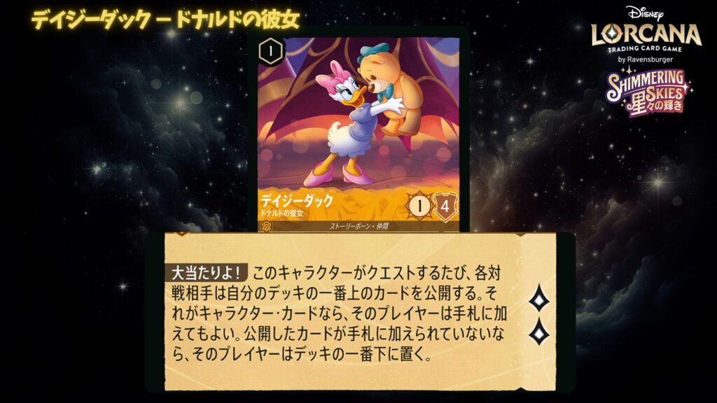 クエスト時に相手がカードを引く可能性はありますが、序盤の安定感は高く、初心者にも扱いやすい一枚です。