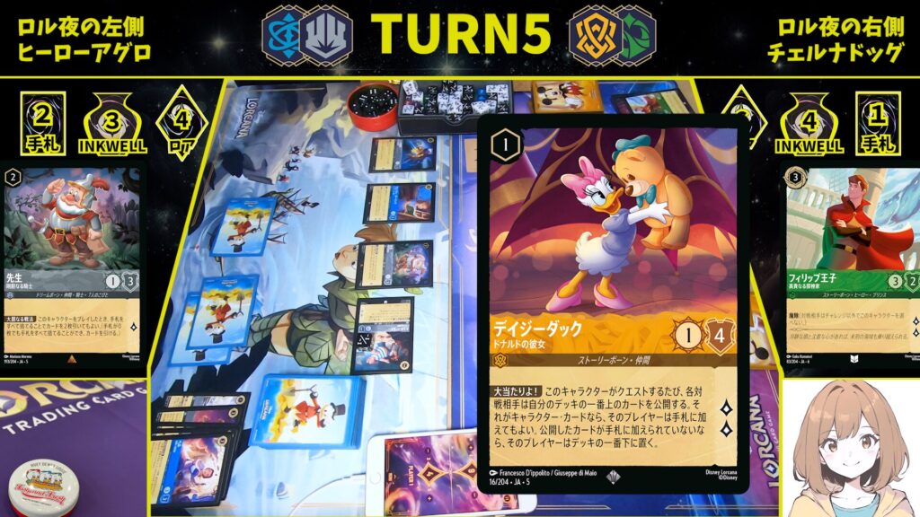 序盤はナラ ー いたずら仔ライオンやデイジー・ダックなどの低コストキャラクターで場を作ります。