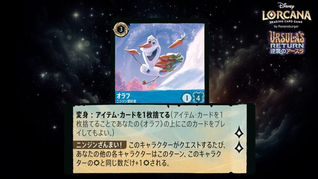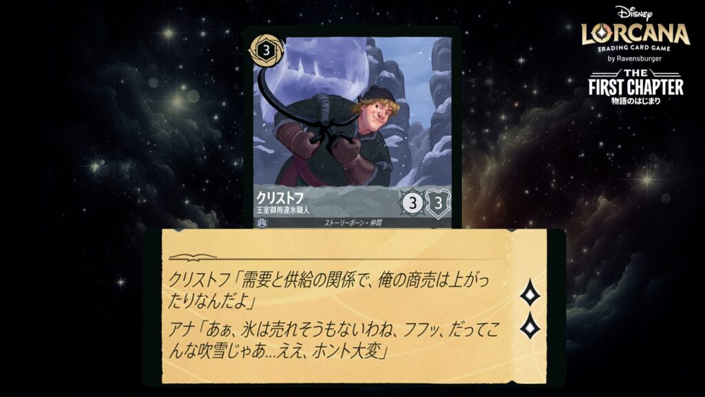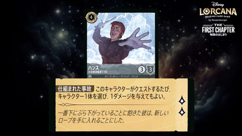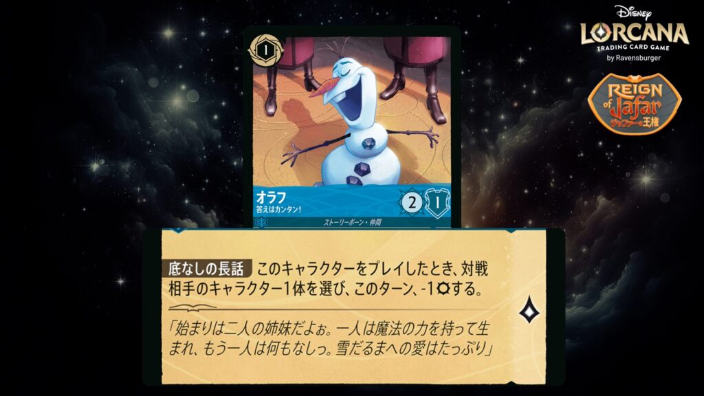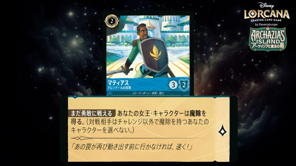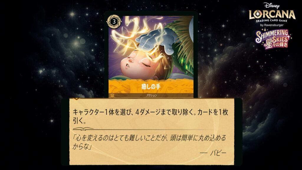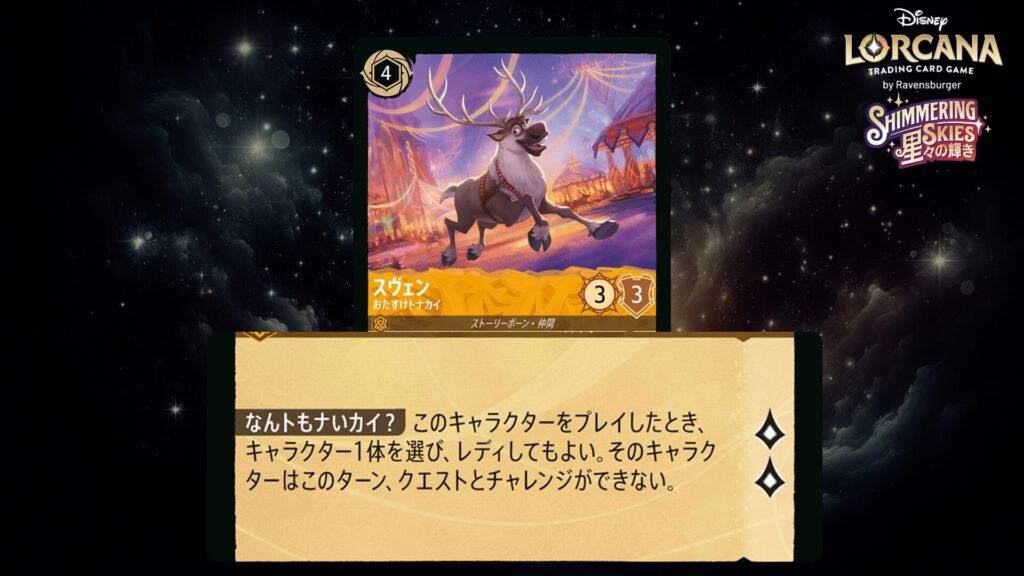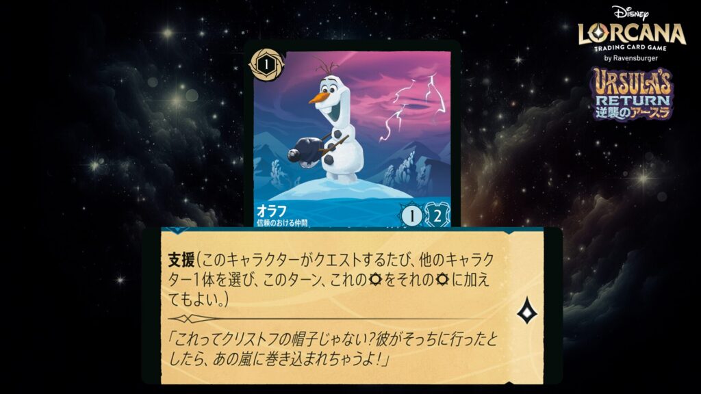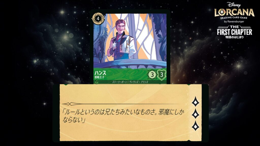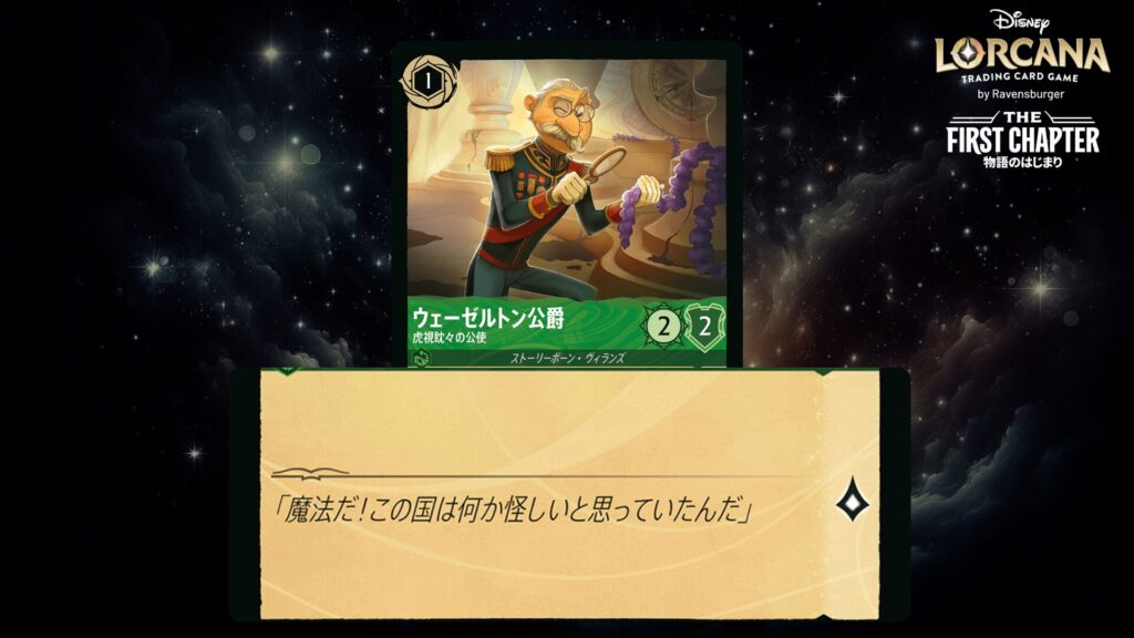「本ブログは、ディズニー・ロルカナ TCG に関連する商標および/または著作権を使用しており、ラベンスバーガーのコミュニティコードポリシー (https://cdn.ravensburger.com/lorcana/community-code-en) のもとで使用が許可されています。 私たちは、このコンテンツの利用やアクセスに対して料金を請求することを明確に禁止されています。本ブログは、ディズニーやラベンスバーガーによって公開、承認、または特別に認可されたものではありません。 ディズニー・ロルカナ TCG の詳細については、https://www.disneylorcana.com/en-US/ をご覧ください。」