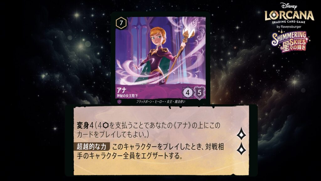 🎯 <変身>4インク(4インクを支払うことであなたの《アナ》の上にこのカードをプレイしてもよい。)