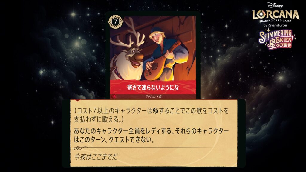 🎯 (コスト7以上のキャラクターはエグザートすることでこの歌をコストを支払わずに歌える。)