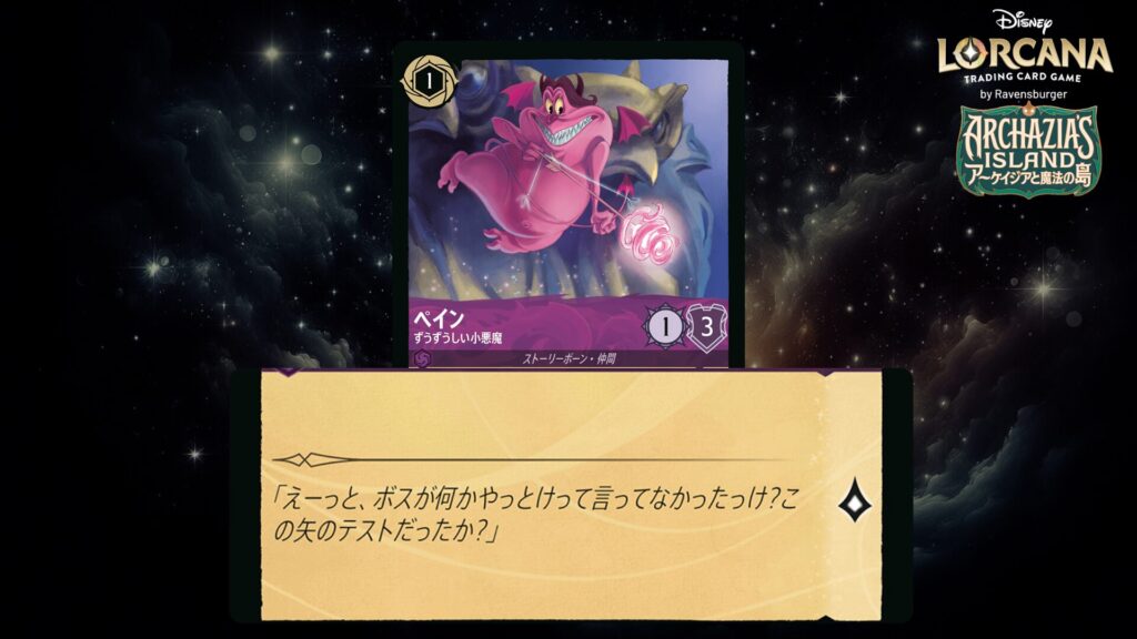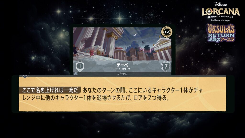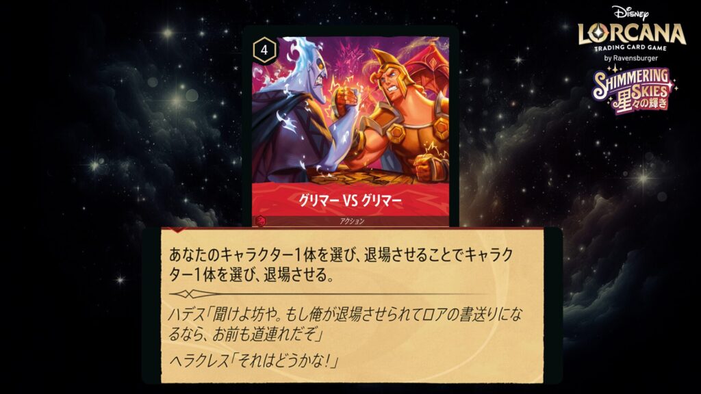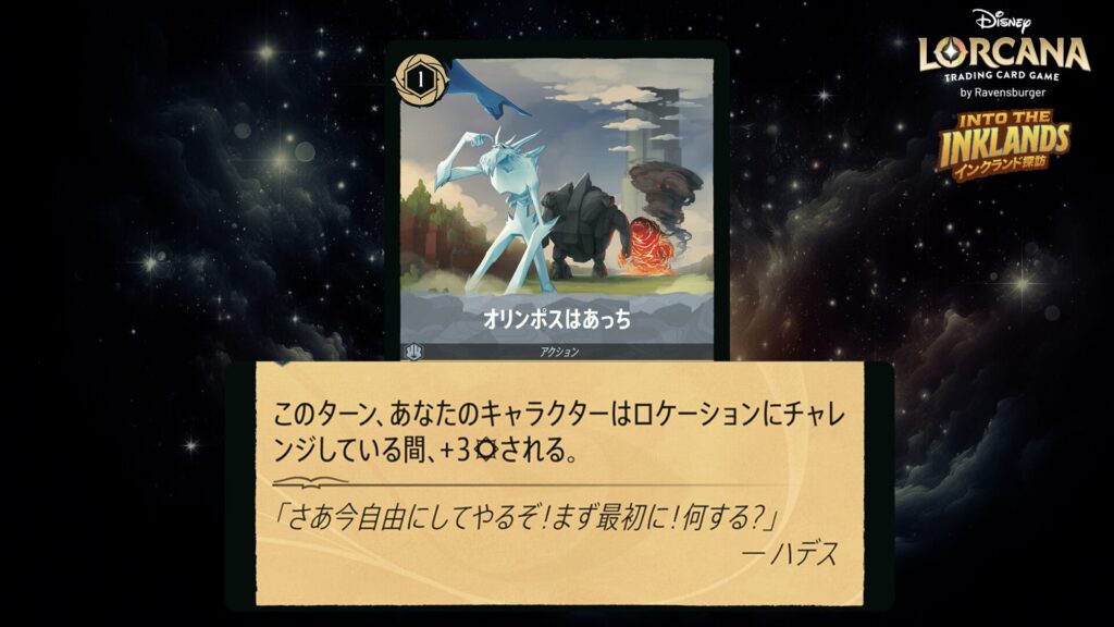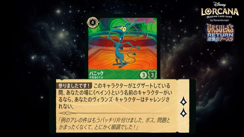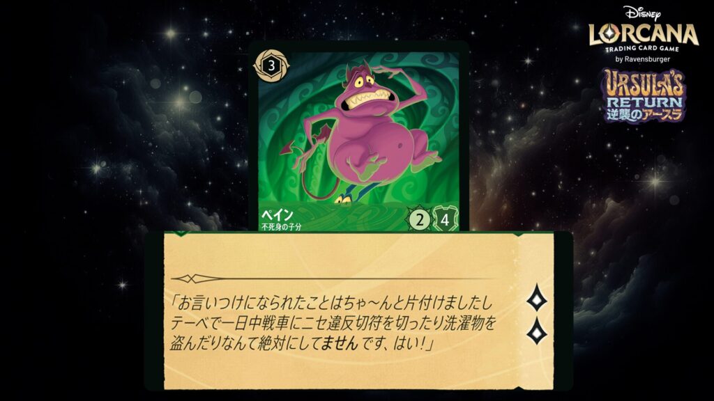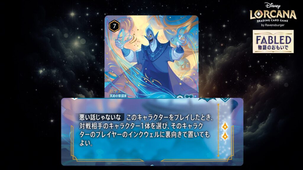 「本ブログは、ディズニー・ロルカナ TCG に関連する商標および/または著作権を使用しており、ラベンスバーガーのコミュニティコードポリシー (https://cdn.ravensburger.com/lorcana/community-code-en) のもとで使用が許可されています。 私たちは、このコンテンツの利用やアクセスに対して料金を請求することを明確に禁止されています。本ブログは、ディズニーやラベンスバーガーによって公開、承認、または特別に認可されたものではありません。 ディズニー・ロルカナ TCG の詳細については、https://www.disneylorcana.com/en-US/ をご覧ください。」