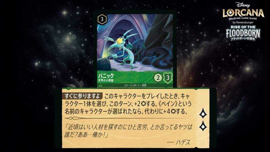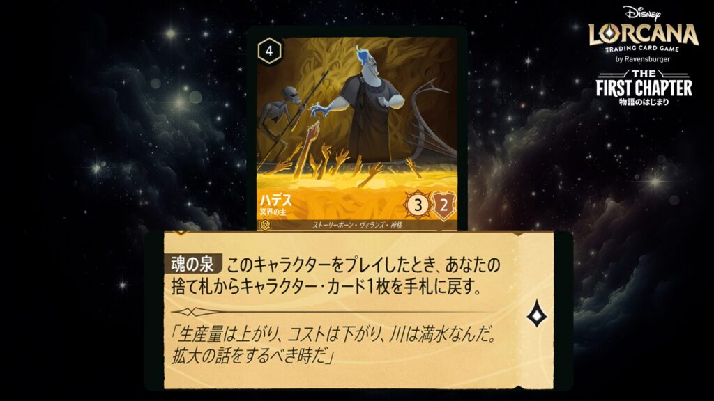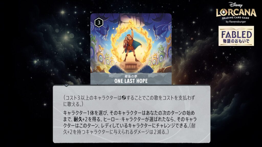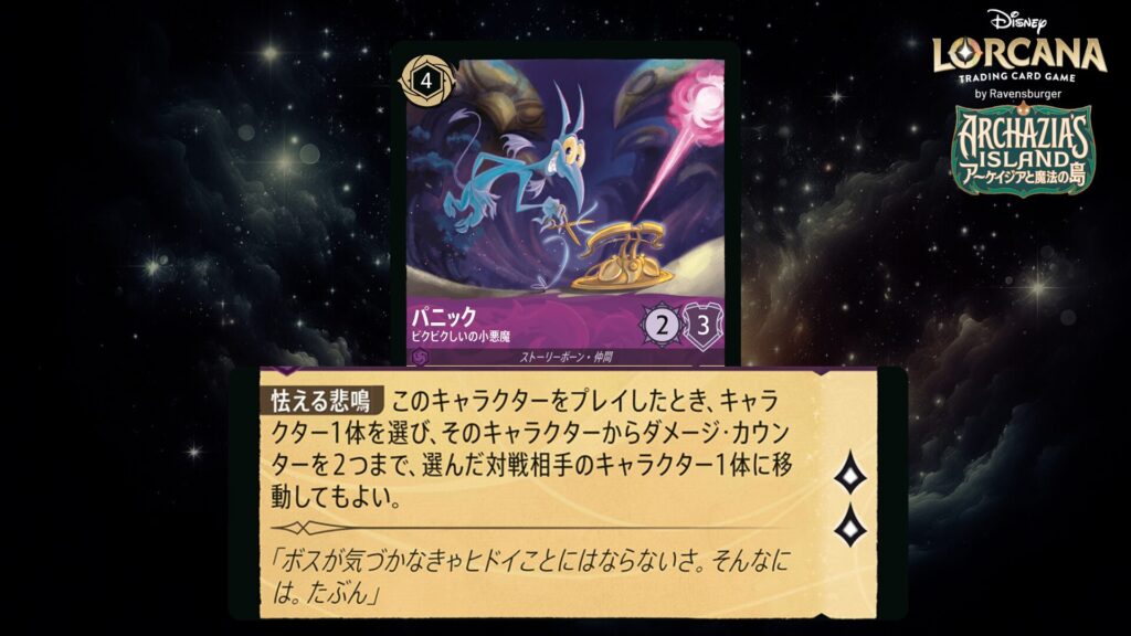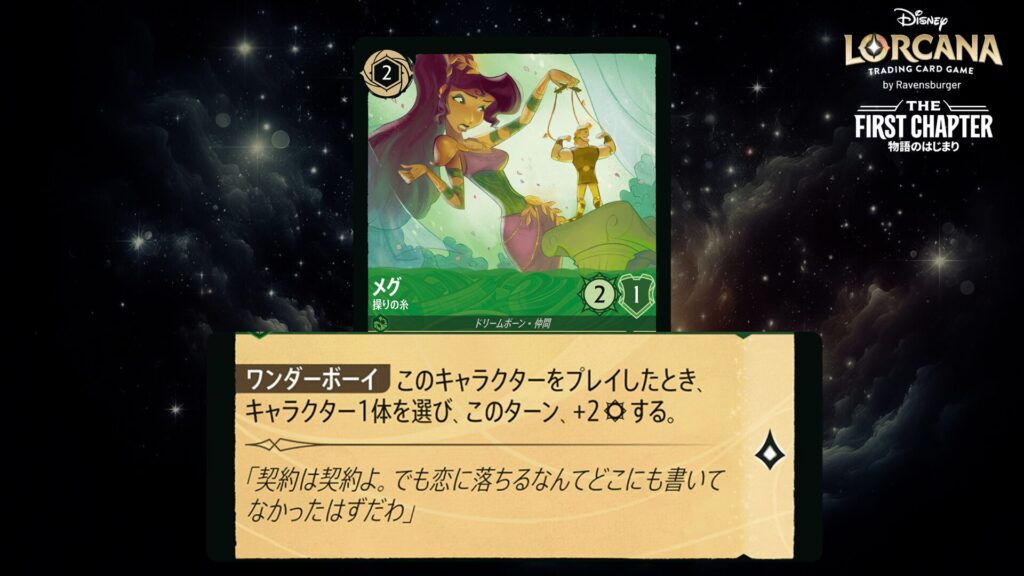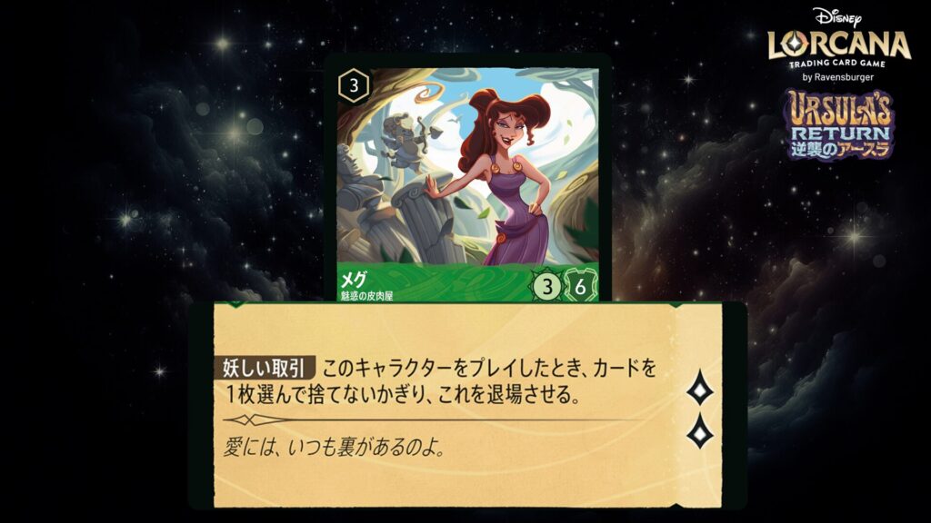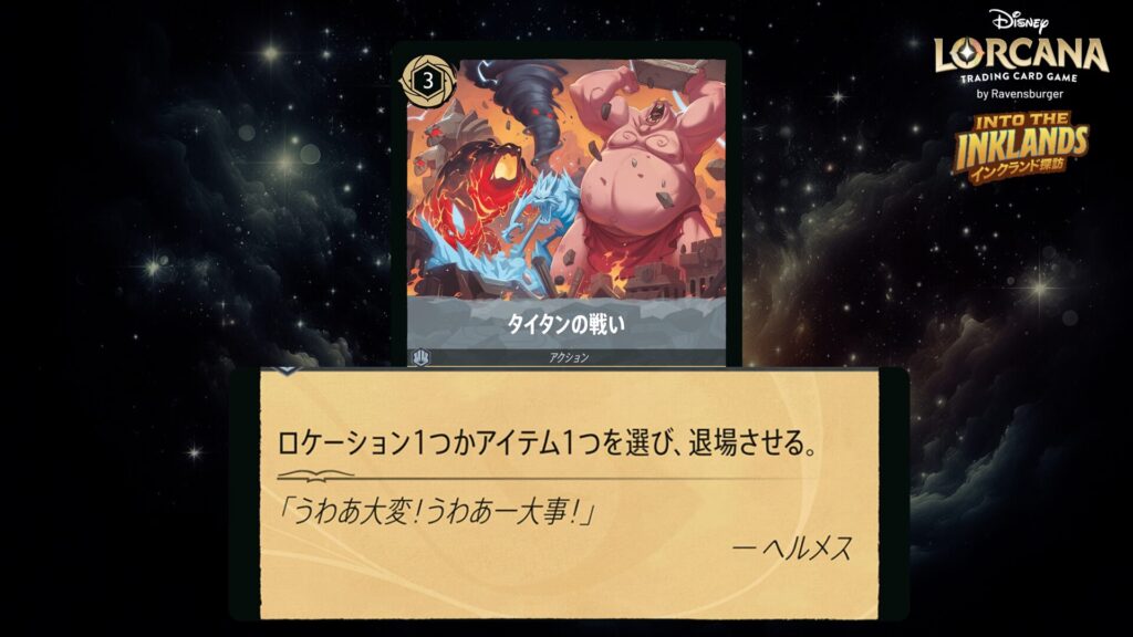 「本ブログは、ディズニー・ロルカナ TCG に関連する商標および/または著作権を使用しており、ラベンスバーガーのコミュニティコードポリシー (https://cdn.ravensburger.com/lorcana/community-code-en) のもとで使用が許可されています。 私たちは、このコンテンツの利用やアクセスに対して料金を請求することを明確に禁止されています。本ブログは、ディズニーやラベンスバーガーによって公開、承認、または特別に認可されたものではありません。 ディズニー・ロルカナ TCG の詳細については、https://www.disneylorcana.com/en-US/ をご覧ください。」