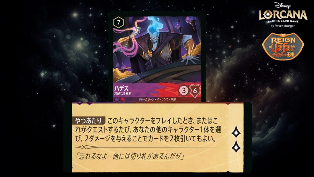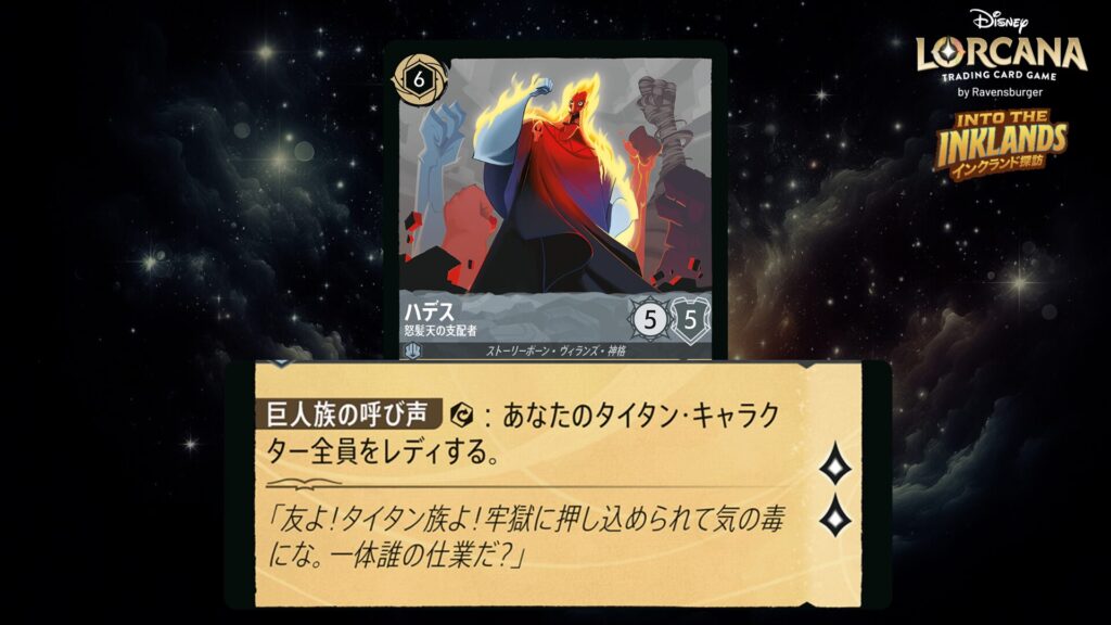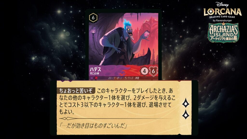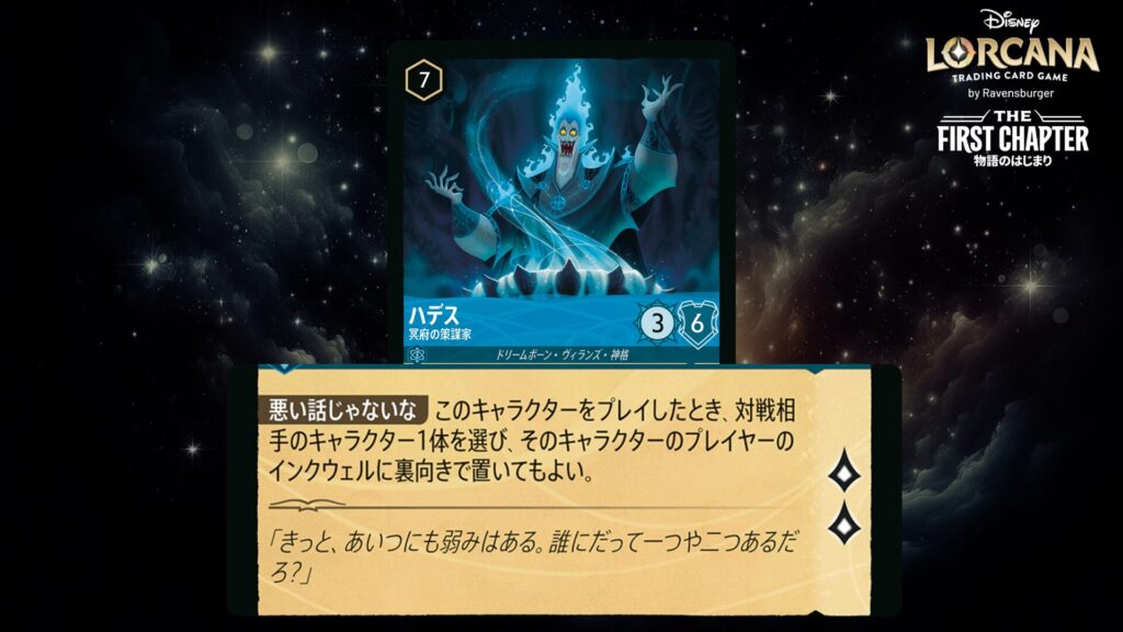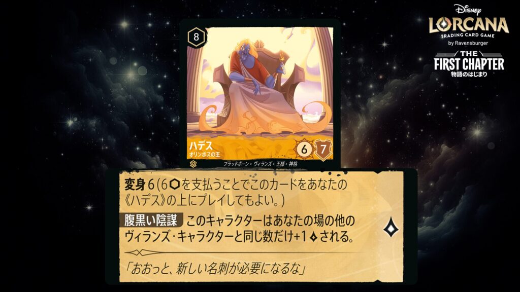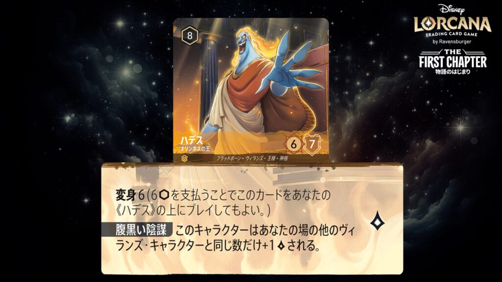 🎯 《変身》6(6インクを支払うことでこのカードをあなたの《ハデス》の上にプレイしてもよい。)