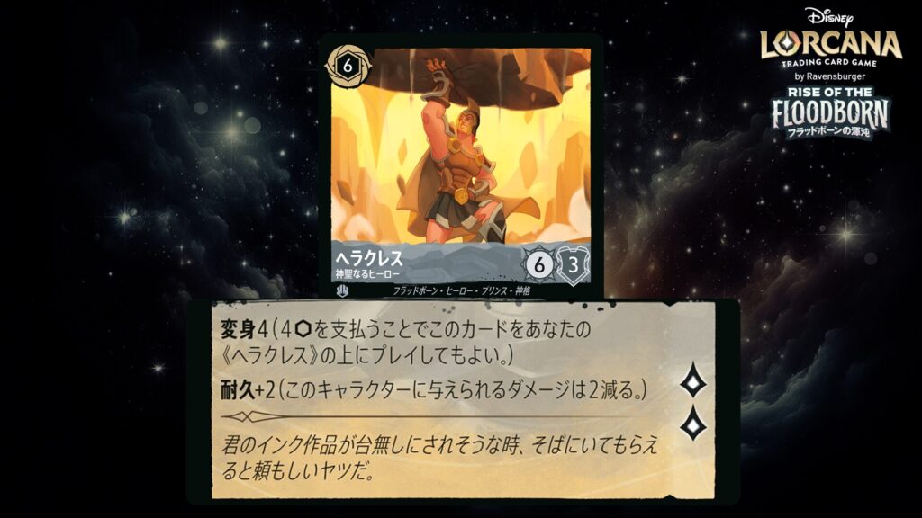 🎯 《変身》4(4インクを支払うことでこのカードをあなたの《ヘラクレス》の上にプレイしてもよい。)