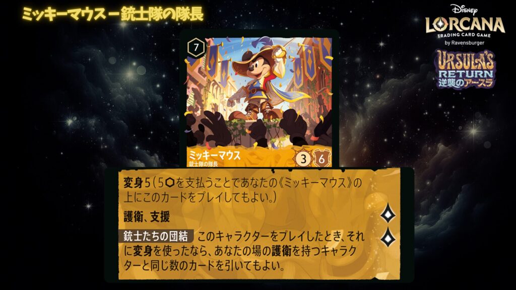 「本ブログは、ディズニー・ロルカナ TCG に関連する商標および/または著作権を使用しており、ラベンスバーガーのコミュニティコードポリシー (https://cdn.ravensburger.com/lorcana/community-code-en) のもとで使用が許可されています。 私たちは、このコンテンツの利用やアクセスに対して料金を請求することを明確に禁止されています。本ブログは、ディズニーやラベンスバーガーによって公開、承認、または特別に認可されたものではありません。 ディズニー・ロルカナ TCG の詳細については、https://www.disneylorcana.com/en-US/ をご覧ください。」