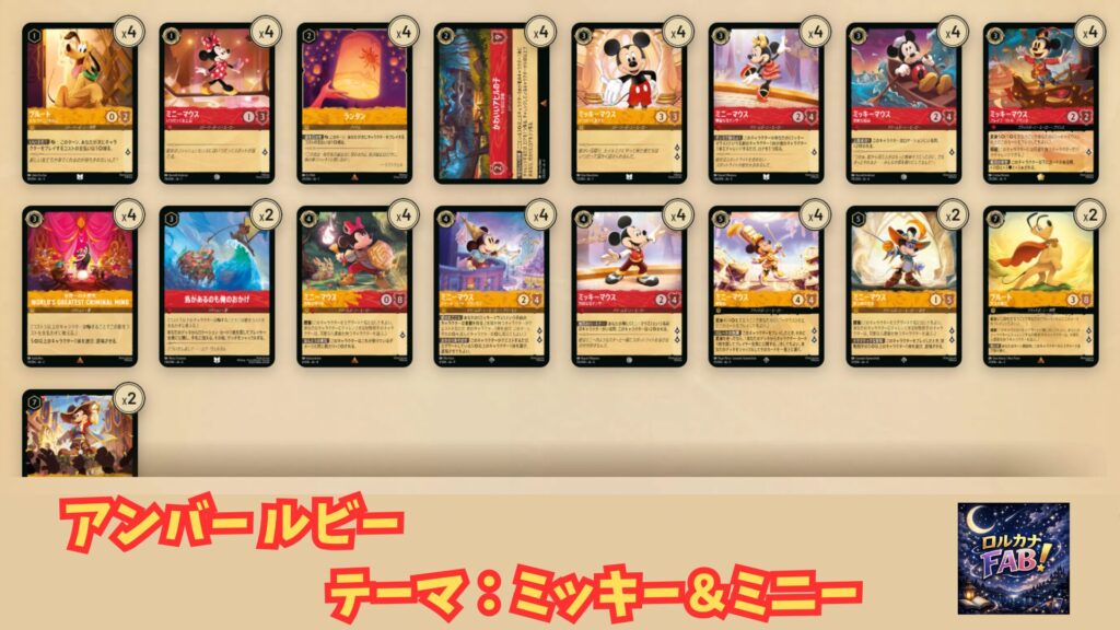 ディズニー・ロルカナで人気の高い「ミッキー」と「ミニー」を中心にしたアンバー・ルビーデッキを紹介します。