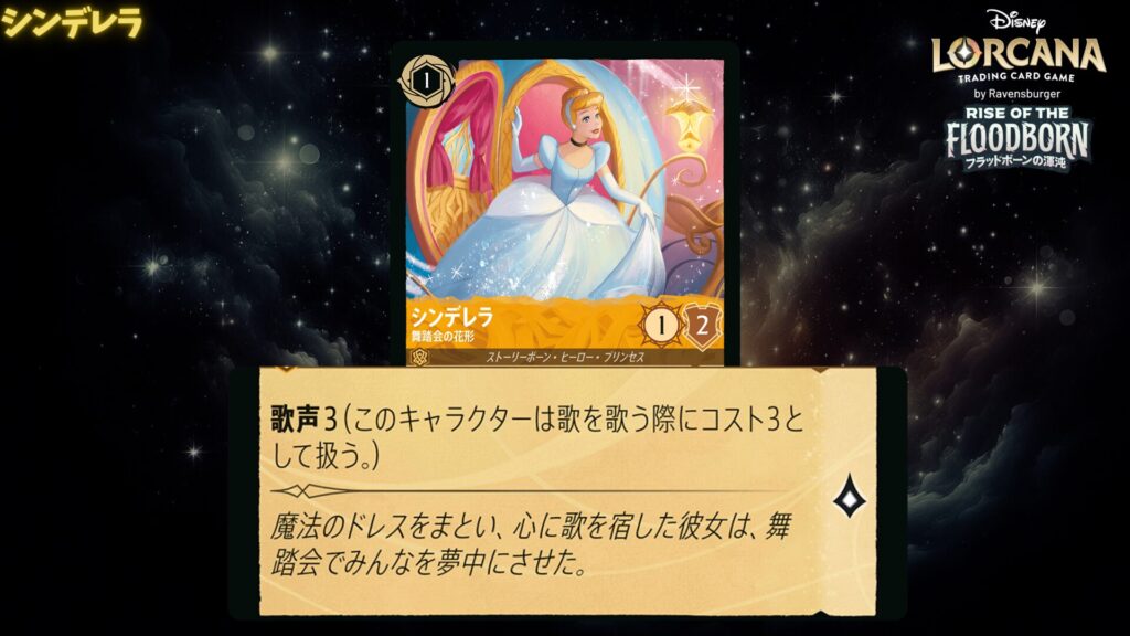 シンデレラ、アリエル、ラプンツェルなど、おなじみのプリンセスたちが登場し、歌カードを使いながら戦うのが特徴です。