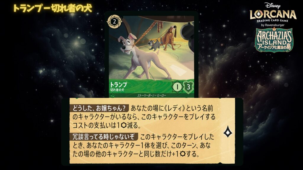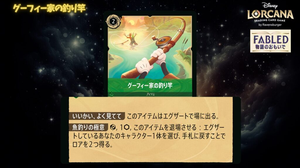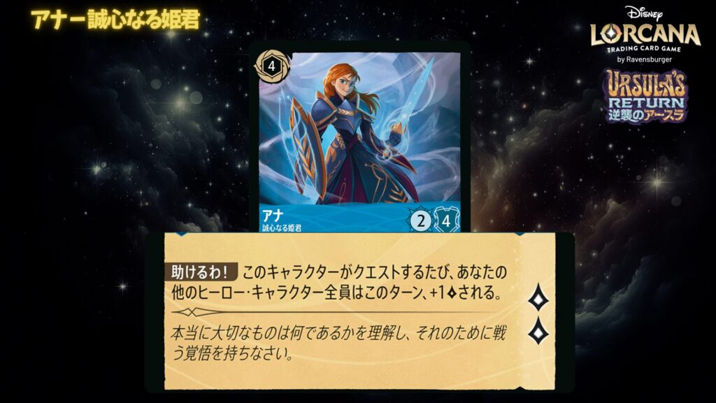 「本ブログは、ディズニー・ロルカナ TCG に関連する商標および/または著作権を使用しており、ラベンスバーガーのコミュニティコードポリシー (https://cdn.ravensburger.com/lorcana/community-code-en) のもとで使用が許可されています。 私たちは、このコンテンツの利用やアクセスに対して料金を請求することを明確に禁止されています。本ブログは、ディズニーやラベンスバーガーによって公開、承認、または特別に認可されたものではありません。 ディズニー・ロルカナ TCG の詳細については、https://www.disneylorcana.com/en-US/ をご覧ください。」