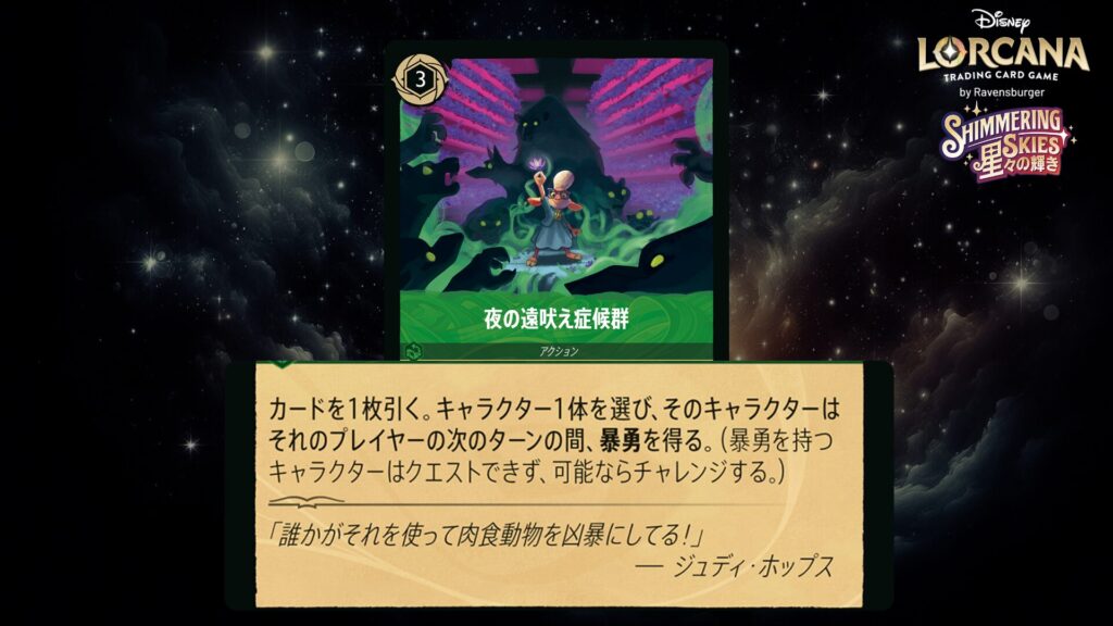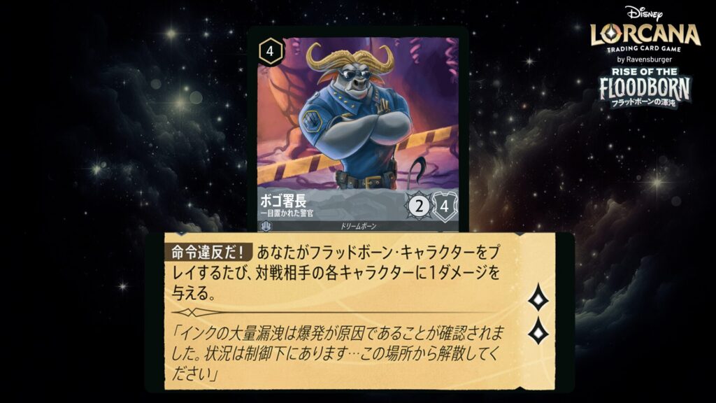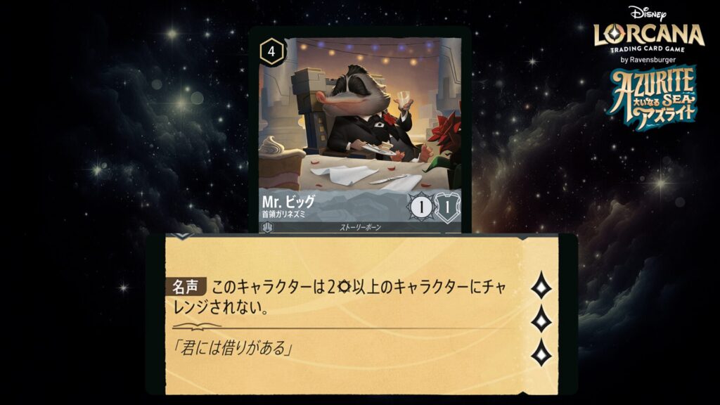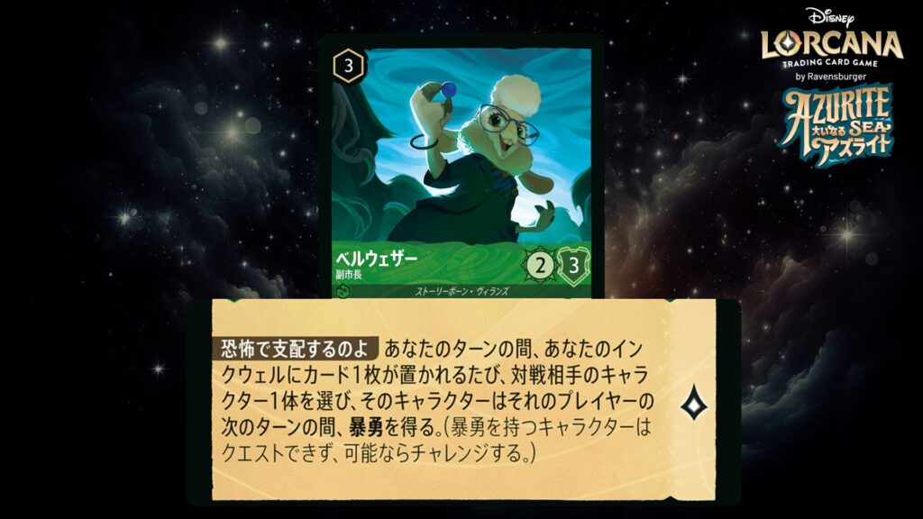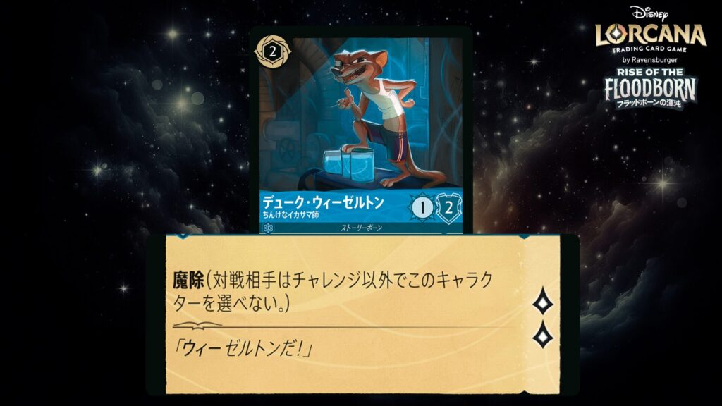 「本ブログは、ディズニー・ロルカナ TCG に関連する商標および/または著作権を使用しており、ラベンスバーガーのコミュニティコードポリシー (https://cdn.ravensburger.com/lorcana/community-code-en) のもとで使用が許可されています。 私たちは、このコンテンツの利用やアクセスに対して料金を請求することを明確に禁止されています。本ブログは、ディズニーやラベンスバーガーによって公開、承認、または特別に認可されたものではありません。 ディズニー・ロルカナ TCG の詳細については、https://www.disneylorcana.com/en-US/ をご覧ください。」