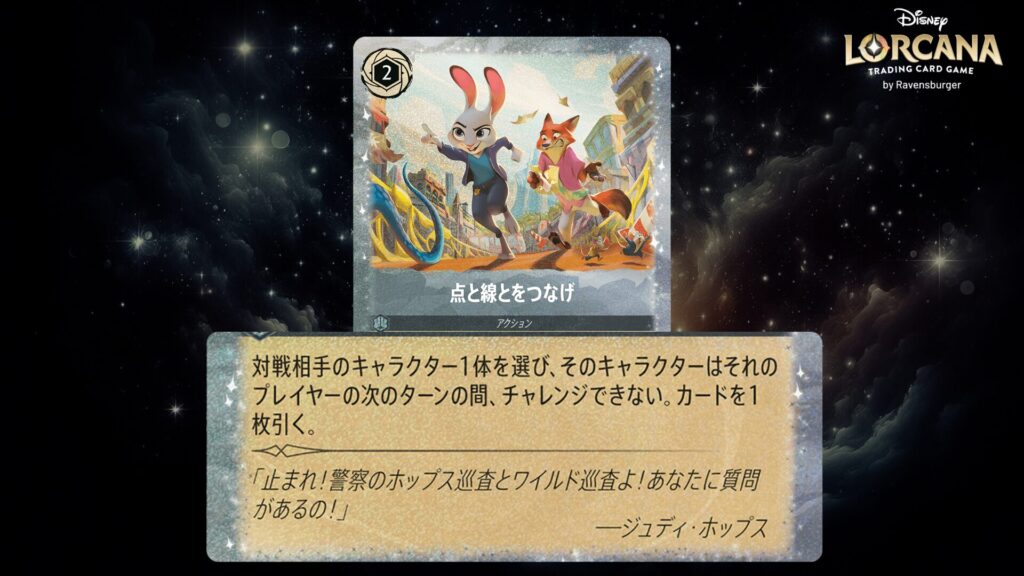 ディズニー・ロルカナに登場する「ズートピア」のカードを全セット分、1枚ずつ詳しくご紹介します。