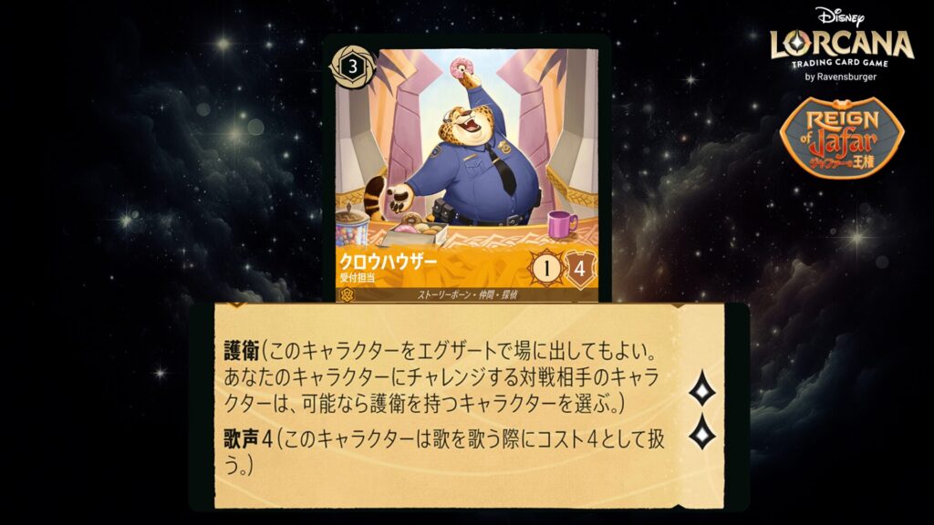 🎯 <護衛>(このキャラクターをエグザートで場に出してもよい。あなたのキャラクターにチャレンジする対戦相手のキャラクターは、可能なら護衛を持つキャラクターを選ぶ。)
