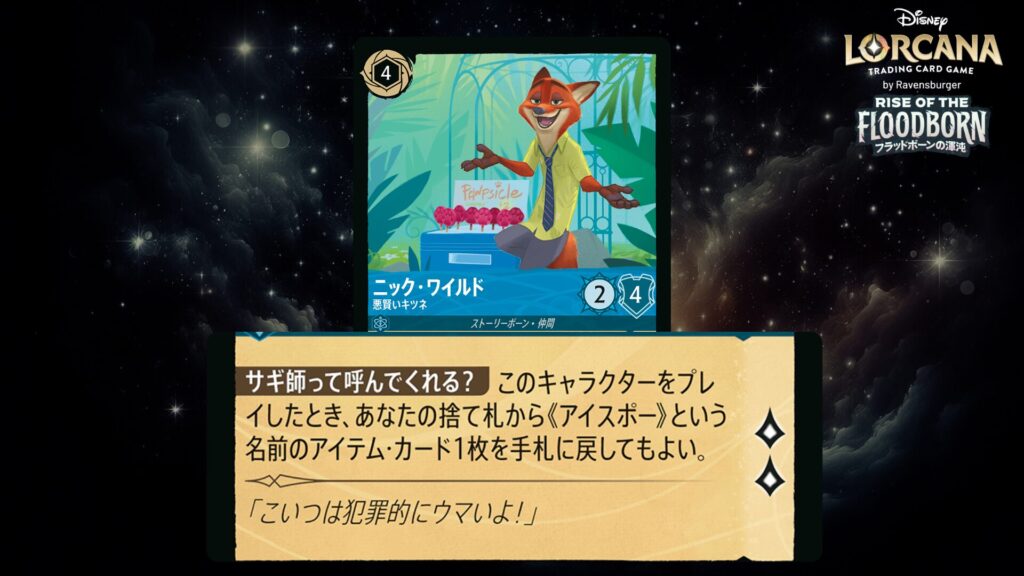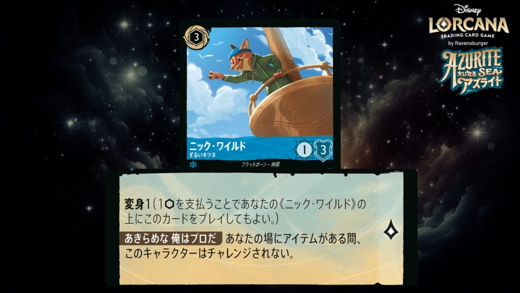 🎯 <変身>1(1インクを支払うことであなたの《ニック・ワイルド》の上にこのカードをプレイしてもよい。)