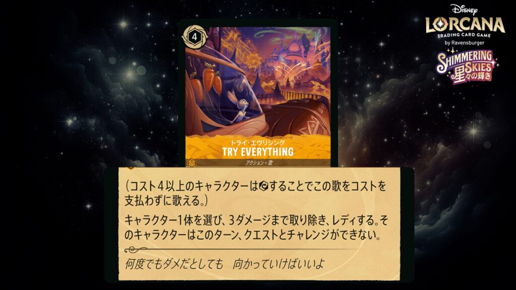 🎯 (コスト2以上のキャラクターはエグザートすることでこの歌をコストを支払わずに歌える。)